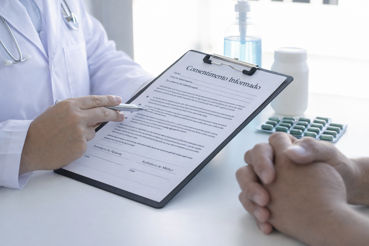 Esclarecido — precedido de informação adequada sobre o diagnóstico, o prognóstico, a natureza e finalidade da intervenção, os seus riscos normais e excecionais, e as alternativas disponíveis.